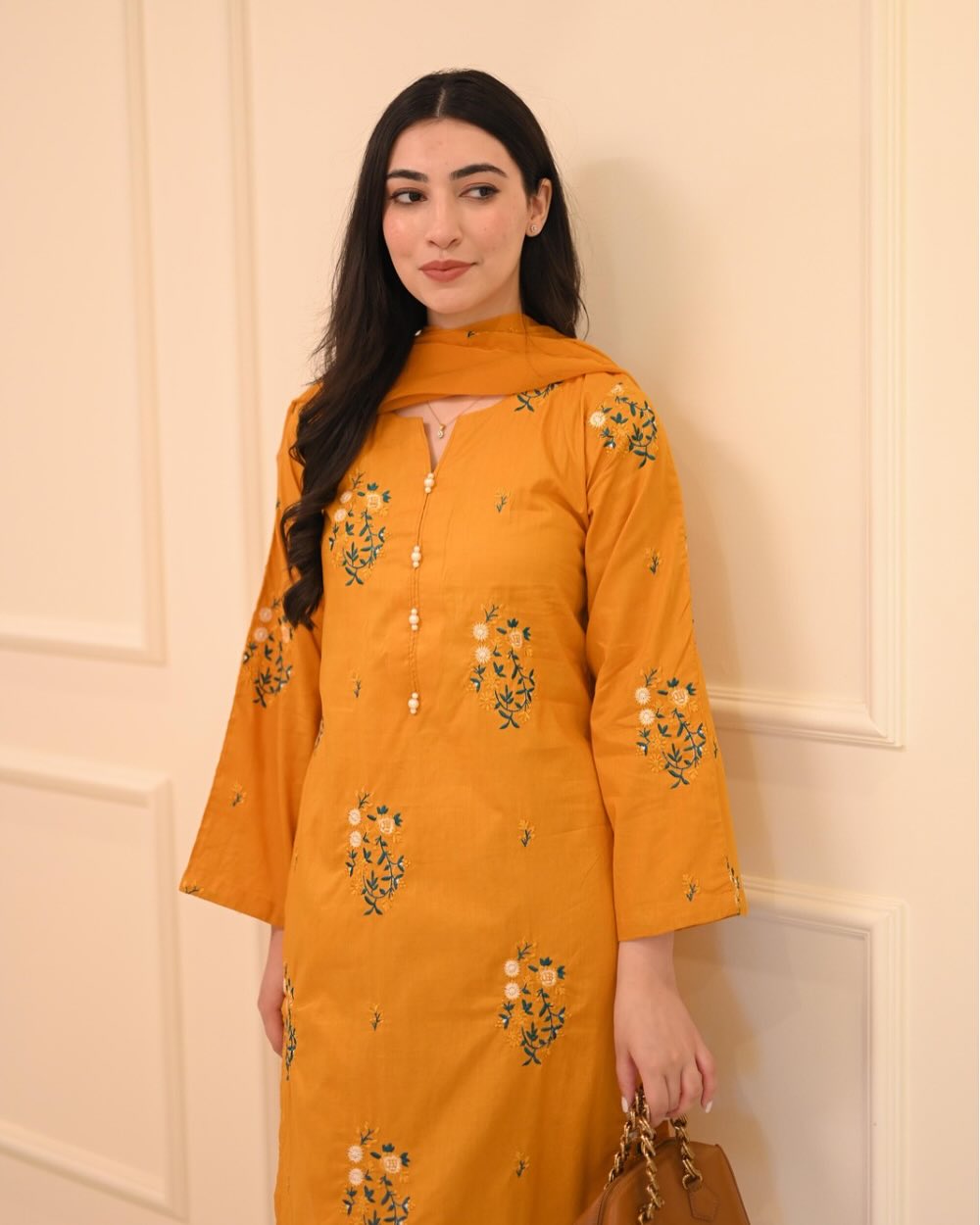 সূর্যমুখী – কটন এমব্রয়ডারি থ্রী পিছ সেট।